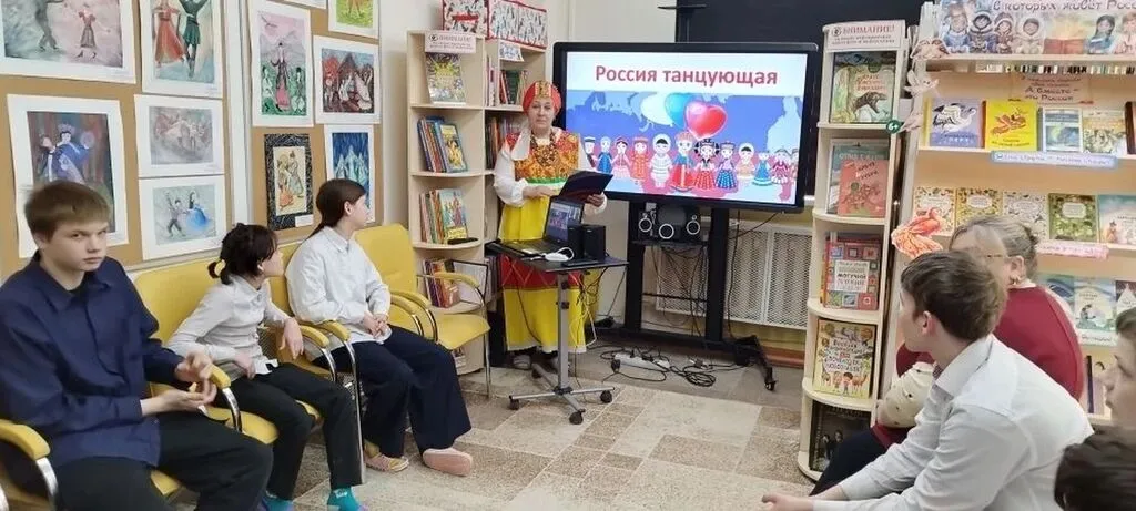 Открыли выставку в формате яркого этнографического видеокруиза «Россия танцующая». Юные художники и их наставники собрались в библиотеке, где на большом экране одна за другой появлялись цифровые копии картин, а следом за ними – видеофрагменты подлинных народных танцев. Ведущая рассказала о культуре и традициях разных народов: от зажигательной лезгинки черкесов до степенного русского хоровода, от татарской дроби до бурятского ёхора, от танцев лесных народов (удмуртов и марийцев) до колоритной цыганочки и даже до необычных подражательных танцев хантов и эскимосов Сибири. Ребята увидели, как характер народа, его история и климат отражаются в движениях и костюмах. Сама выставка «Россия – народов дружный хоровод» с рисунками, изображающими танцы разных этносов, разместилась в экспозиционной части библиотеки и продолжит свою работу для всех желающих в течение ближайших месяцев. «Каждая картина – это маленькая история о большой стране, – отметили посетители. – Ребята из ДШИ вложили душу в свои работы, пусть их увидят колчеданцы.