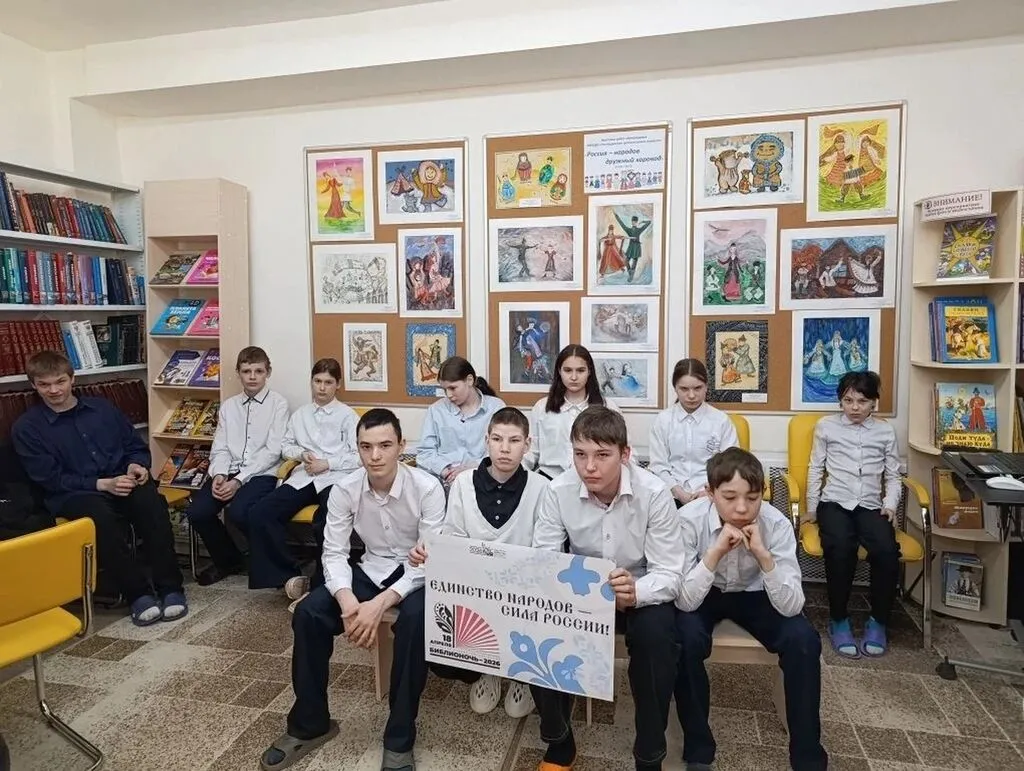 Всероссийская акция «Библионочь-2026» в этом году была посвящена единству культур и традиций народов России. Колчеданская модельная библиотека подготовила для своих гостей насыщенную программу «Россия – народов дружный хоровод», центром которой стало открытие выставки творческих работ обучающихся Колчеданской детской школы искусств.